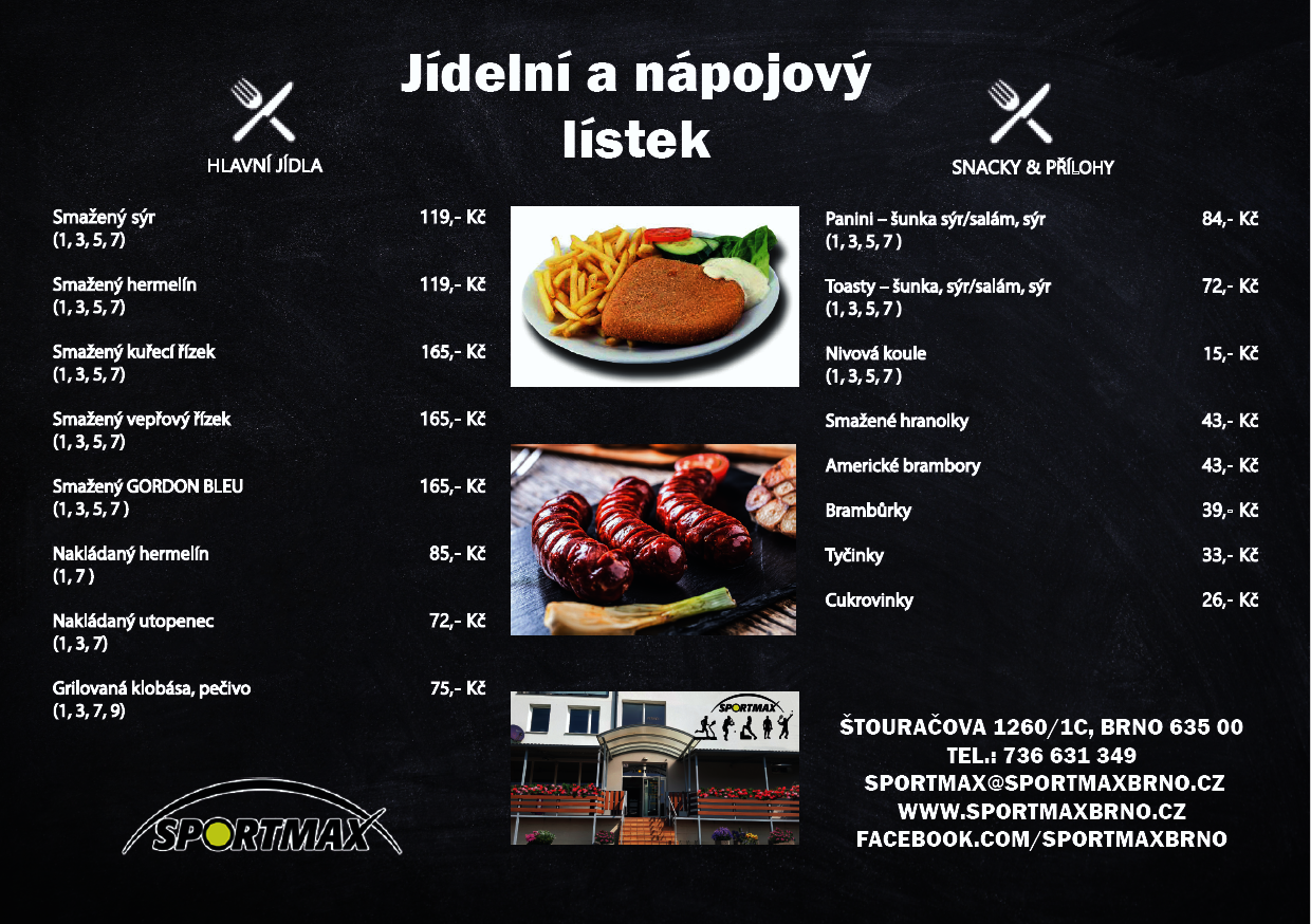 Jídelní a nápojový lístek Sportmax